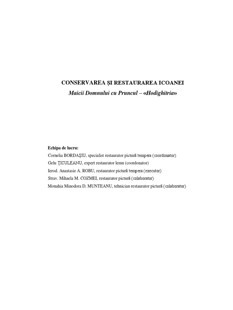 Cel mai bun Conservarea Si Restaurarea Icoanei Maicii Domnului Cu Pruncul Pdf